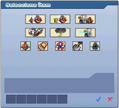 Hay 6 espacios para los Ítems en Gunbound. Encontrarás elementos que ocupan 1 o 2 espacios.
