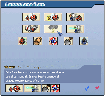 Cambio de viento | 1 | 100 | No | Invierte la dirección del viento. Debido a su larga Delay, la decisión de usarlo no siempre puede ser la mejor opción. |